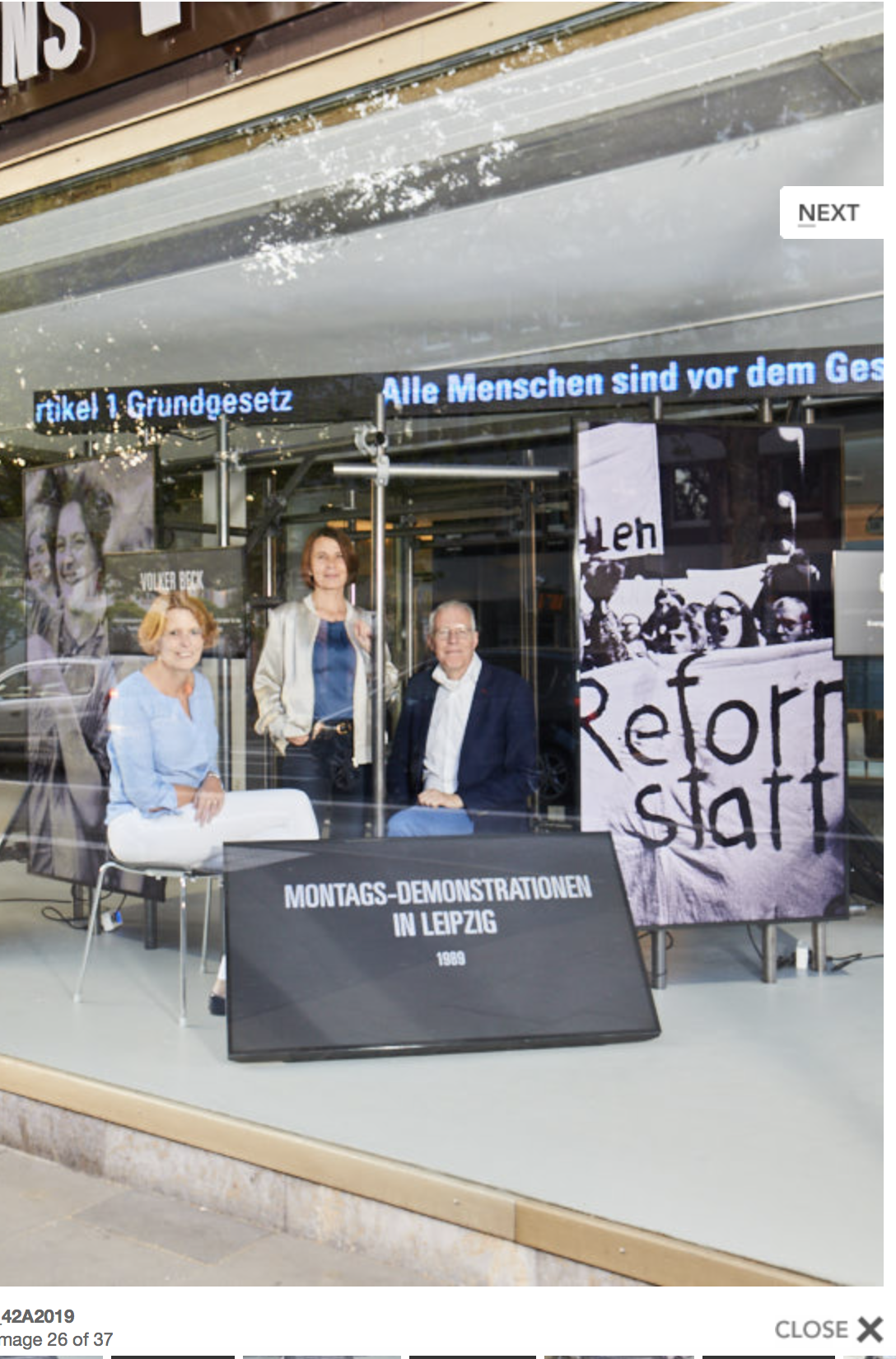 Georg Forster, Heinrich von Gagern, Elisabeth Selbert, Anna, Seghers, Willy Brandt und Navid Kermani gehören zu den beispielhaften Demokratinnen und Demokraten, deren Leben und Wirken den Besuchern in der Installation „Gesichter der Demokratie“ mit Bildern und Zitaten vor Augen geführt werden.