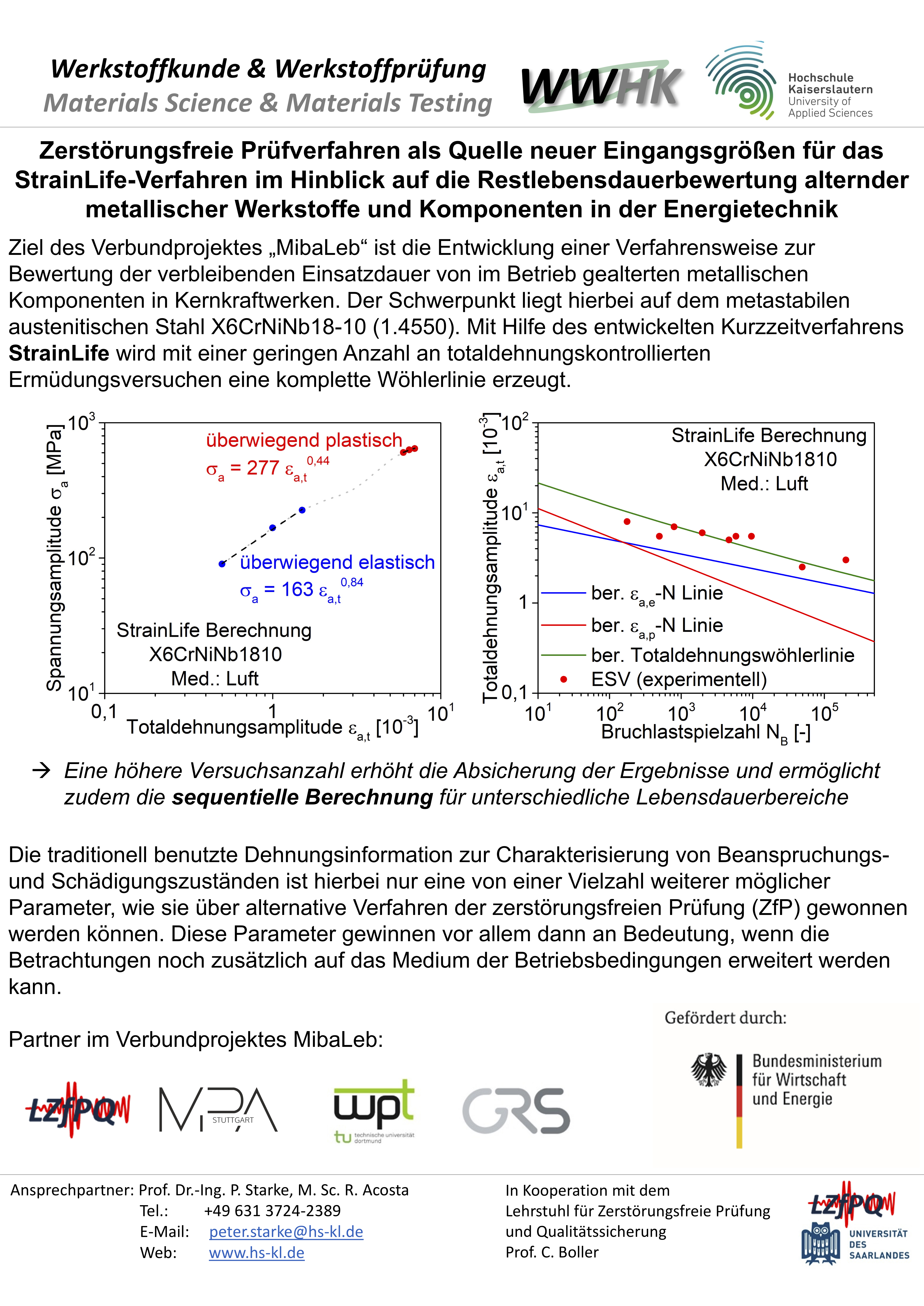 Ziel des Verbundprojektes "MibaLeb" ist die Entwicklung einer Verfahrensweise zur Bewertung der verbleibenden Einsatzdauer von im Betrieb gealterten metallischen Komponenten in Kernkraftwerken. Der Schwerpunkt liegt hierbei auf dem metastabilen austenitischen Stahl X6CrNiNb18-10 (1.4550).