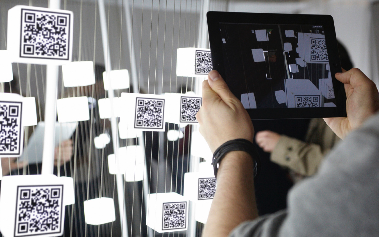 Codiert auf kleinen weißen Würfeln, die scheinbar frei im Raum zu schweben scheinen, können die Filme über bereitgestellte iPads abgerufen und angesehen werden. Weitere interaktive Elemente wie eine Medienfassade und ergänzen das Konzept. So lernt der Besucher fast im Vorbeigehen zahlreiche internationale Gestalterikonen wie Oskar Fischinger, Alex Gopher oder Jenny Holzer direkt mit ihren Werken kennen.