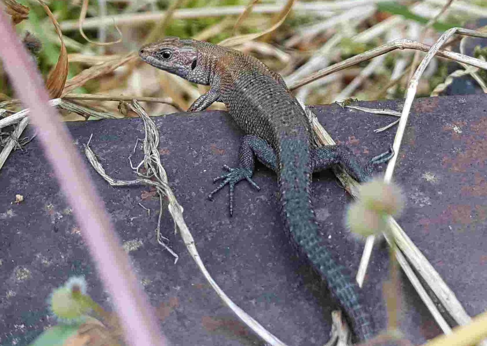 Junge Zauneidechse sonnt sich im Orchideengebiet